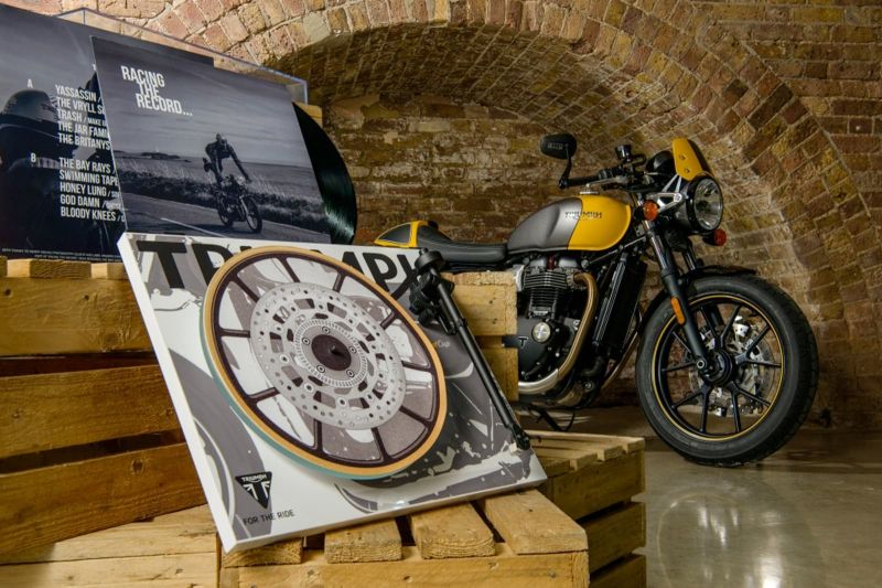 The vinyl album has been pressed by Triumph music partner Flying Vinyl and is entitled ‘Racing the Record’. This title is a nod to the original 1960s café racer practice of selecting a record on a café’s jukebox and racing to a predetermined point and back before the song ended.